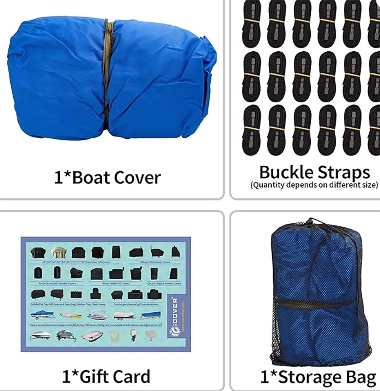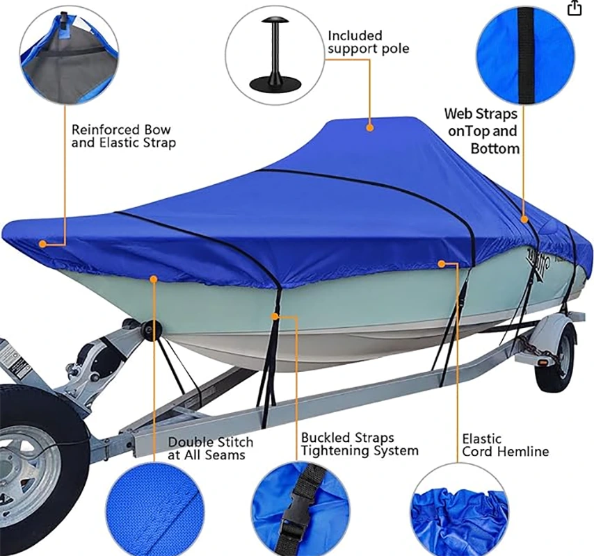 बीम चौड़ाई वॉटरप्रूफ बोट कवर यॉट कवर 22-24 फीट तक लंबी वी-हल सेंटर कंसोल नावों में फिट बैठता है, बीम की चौड़ाई 116 इंच तक और विंडशील्ड की ऊंचाई 30 इंच तक होती है।