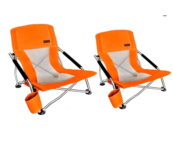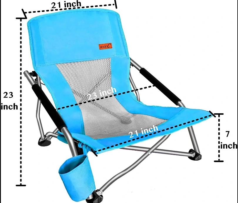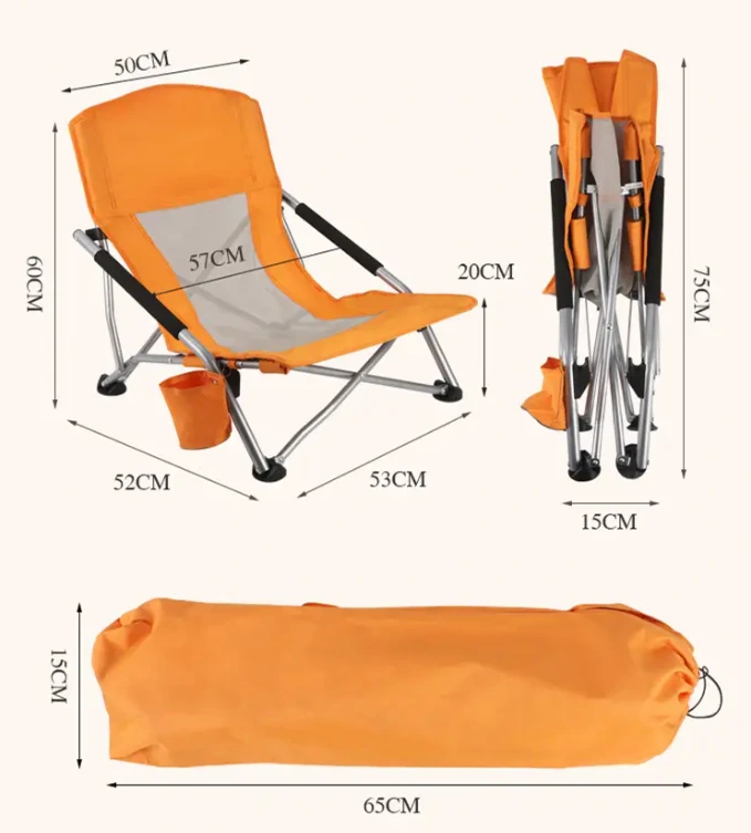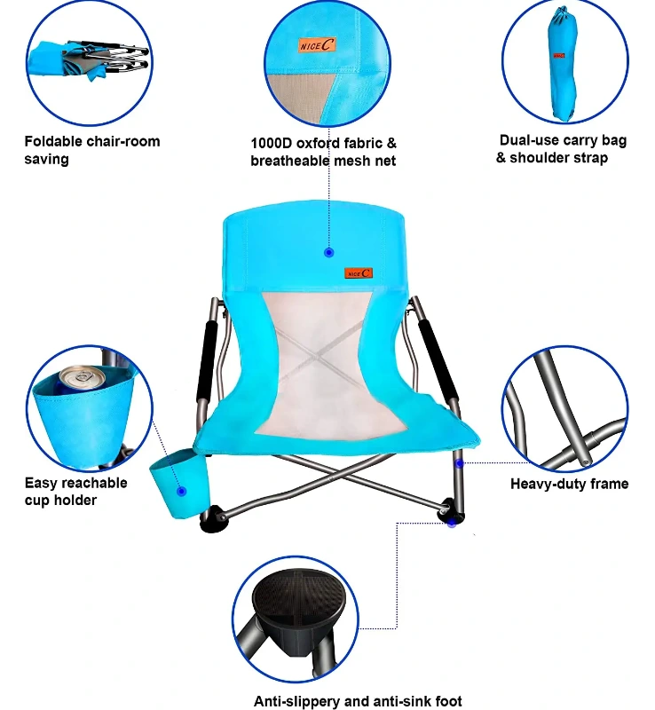 फोल्डिंग बीच सेट, वयस्कों के लिए कम समुद्र तट की कुर्सियाँ, कप धारक के साथ पोर्टेबल रेत की कुर्सी को तह और कैरी बैग। धातु की बाहों पर हाथ कुशन हैं ताकि आप अपनी बाहों को आराम से आराम कर सकें।