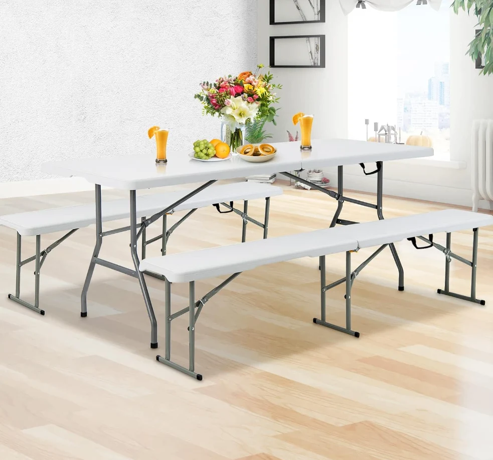 उच्च गुणवत्ता वाले आउटडोर कैंपिंग टेबल, व्हाइट एचडीपीई सफेद आयताकार पिकनिक टेबल प्लास्टिक फोल्डिंग आउटडोर कैंपिंग टेबल, खाद्य पदार्थ, डेसर्ट, पेय या स्नैक्स रखने के लिए विशाल स्थान प्रदान करता है। यह फोल्डिंग टेबल लगभग 8 लोगों को परिवार के भोजन या पार्टी डिनर के लिए इकट्ठा करने के लिए समायोजित कर सकती है। और टेबल टॉप के सभी कोनों को आकस्मिक चोट को रोकने के लिए गोल किया जाता है।