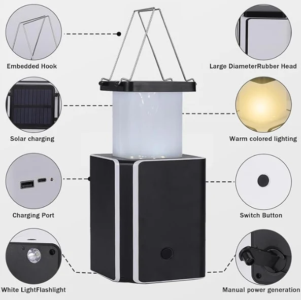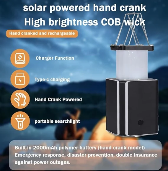 IPX4, इमरजेंसी लाइट्स हैंड-क्रैंक पॉवर जनरेशन, मोबाइल पावर फंक्शन टू मोबाइल फोन पावर सप्लाई ,, इमरजेंसी लाइट्स, फ्लैशलाइट्स, एसओएस चेतावनी लाइट्स।, सौर एलईडी रिचार्जेबल इमरजेंसी कैम्पिंग लालटेन, सौर रिचार्जेबल, रिचार्जेबल टाइप सी,