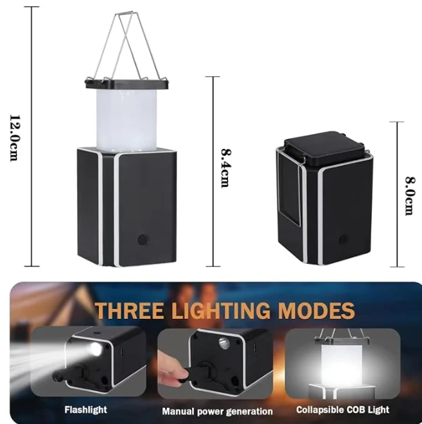 एलईडी सोलर कैम्पिंग लाइट, इमरजेंसी कैंपिंग लालटेन लाइट्स हैंड-क्रैंक पॉवर जेनरेशन। यदि आपके पास चारों ओर एक चार्जर नहीं है और कोई सूरज नहीं है, तो यह हाथ से क्रैंक किया हुआ जनरेटर प्रकाश को चार्ज करने के लिए एकदम सही है।