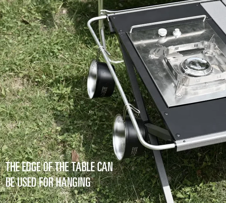 अपनी आवश्यकताओं के अनुसार, लाइटवेट मल्टीफ़ंक्शन फोल्डिंग आईजीटी टेबल। शिविर, बारबेक्यू, आउटडोर खाना पकाने, और बहुत कुछ के लिए बिल्कुल सही। मेज के किनारे का उपयोग व्यंजन और बर्तन लटकाने के लिए किया जा सकता है