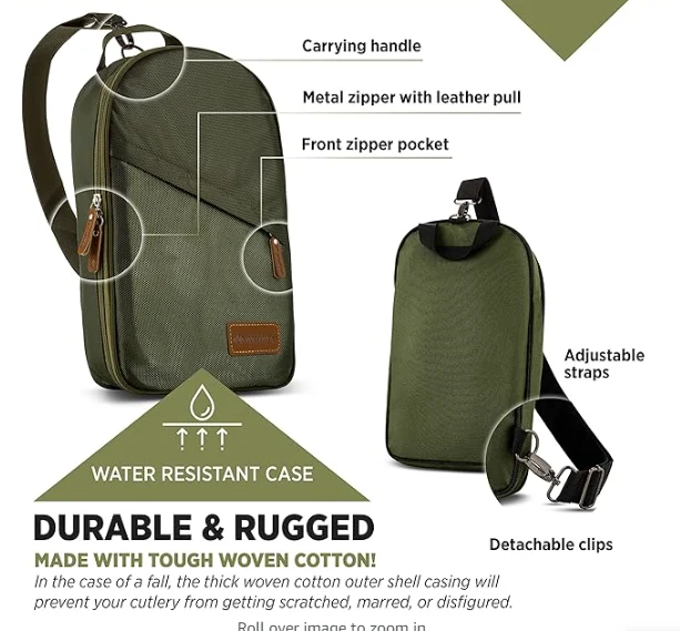 पोर्टेबल आउटडोर कैंपिंग टूल बैग। कई डिब्बे हैं, इसलिए फ्लैटवेयर परिवहन के दौरान मजबूत और क्लैटर नहीं रहता है। एक गिरावट के मामले में, मोटी बुना हुआ सूती बाहरी शेल आवरण आपकी कटलरी को खरोंच, विवाहित या विघटित होने से रोक देगा। मुड़ा हुआ, थैली आराम से यात्रा सामान, ट्रंक में फिट बैठता है या इसे हाथ में रखा जा सकता है (हैंडल में बनाया गया)। डिशवॉशर सुरक्षित है और यह आसानी से साफ हो जाता है और वॉशर फ्रेंडली है। एक चिकना डिजाइन के साथ इंजीनियर, यह मानक भंडारण स्थानों में आसानी से दूर संग्रहीत करता है