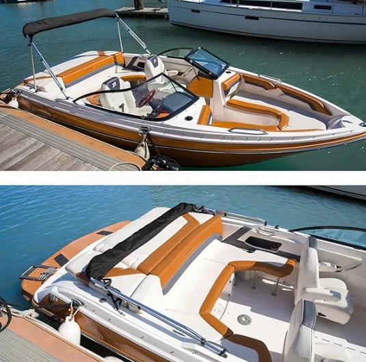 स्टेनलेस बोट बिमिनी टॉप, डबल पु कोटिंग के साथ मरीन ग्रेड 600 डी पॉलिएस्टर कैनवास से बना, हमारा स्टोरेज बूट धूप, समुद्री जल, बारिश और धूल से अच्छी सुरक्षा प्रदान करता है।
