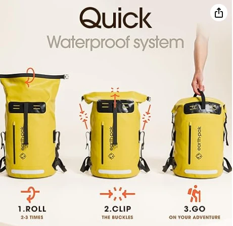 वाटरप्रूफ ड्राई बैकपैक डफेल बैग, 100% वाटरप्रूफ यह सुनिश्चित करने के लिए कि आपका गियर यात्रा करते समय पूरी तरह से सूखा रहे, कयाकिंग, बाइकिंग, कम्यूटिंग, कैम्पिंग और फिशिंग